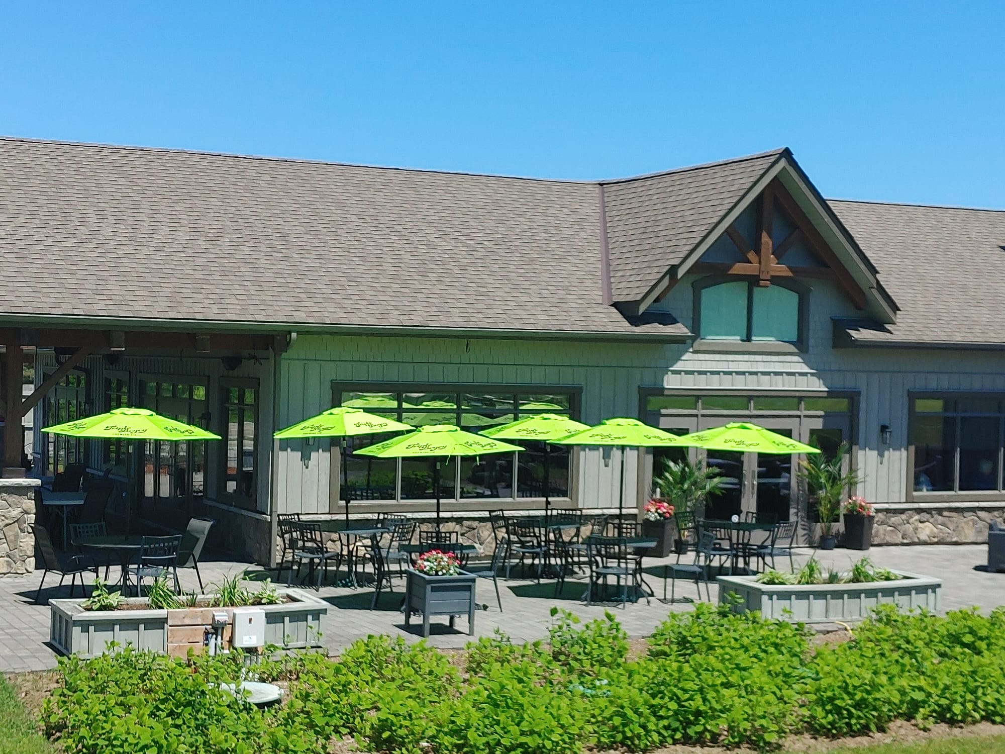 Foxbridge Club house with our newly renovated patios with beautiful views offers variety of Grab and go menu and is after completing the 9th hole or at time of check-ins